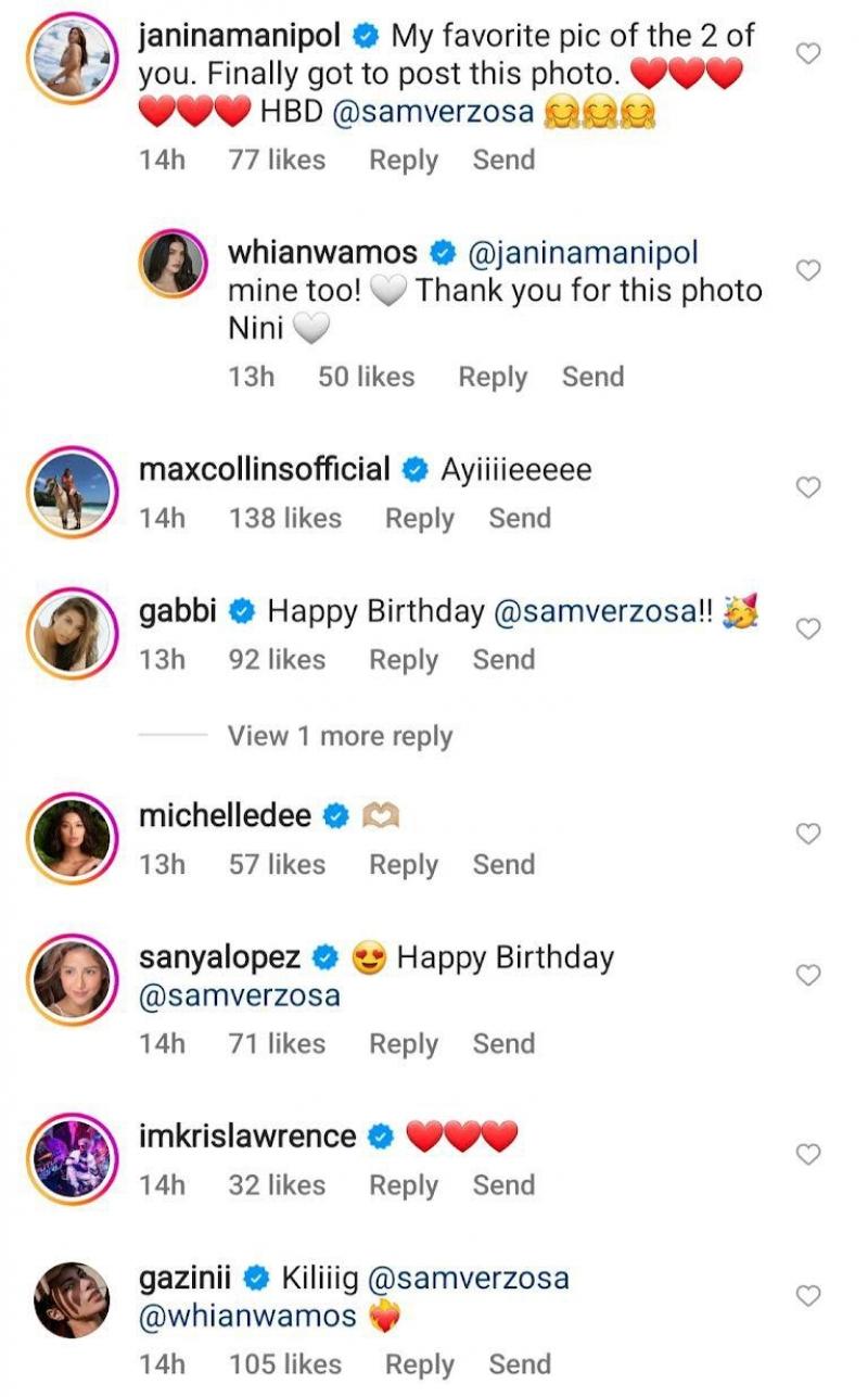 Many of their followers and celebrity friends, including Janina Manipol, Michelle Dee, Max Collins, Gabbi Garcia and Sanya Lopez, expressed their love for the two and sent their birthday greetings for Sam in the comments section.