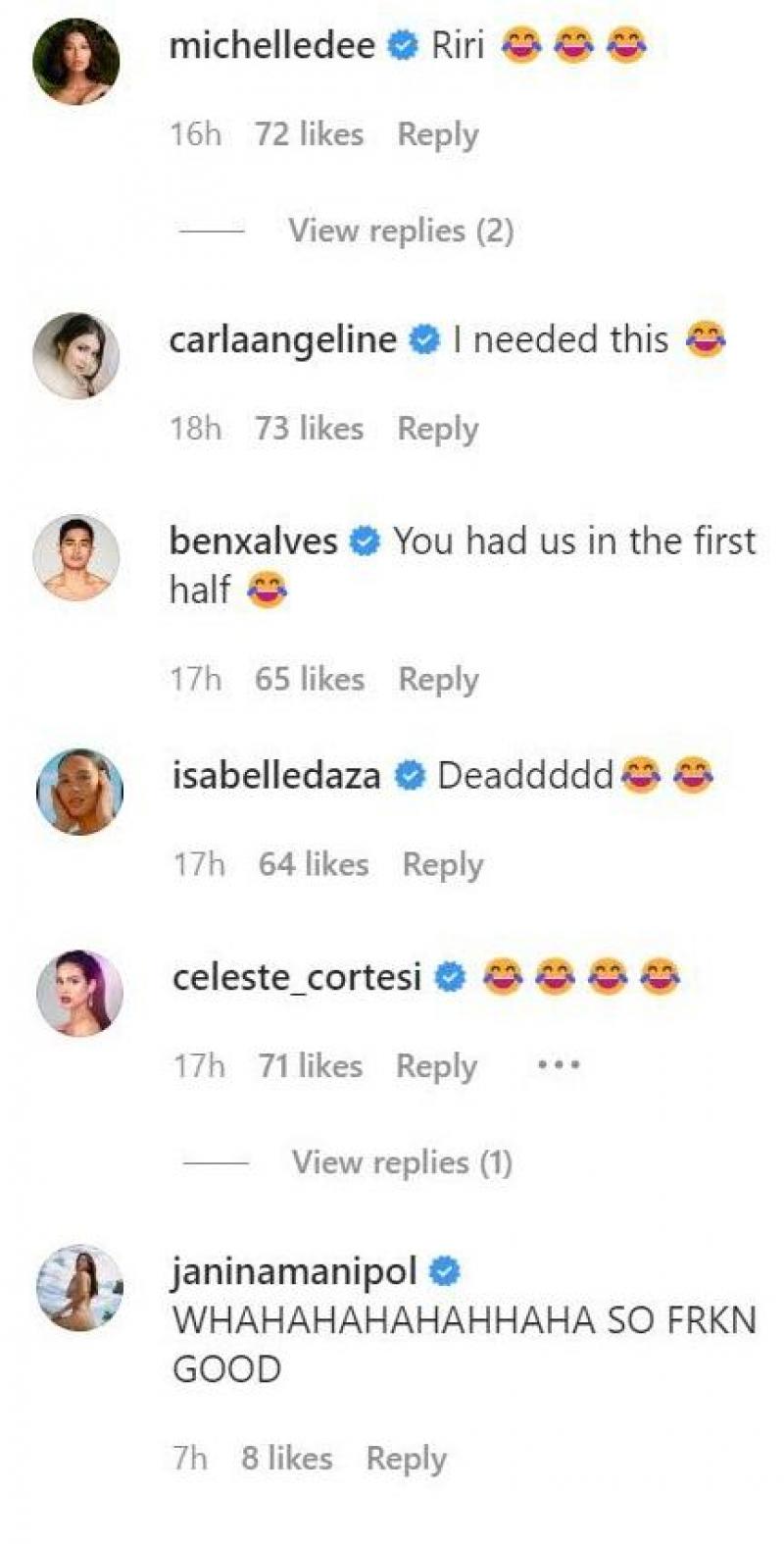Among the celebrities laughing along were Michelle Dee, Carla Abellana, Benjamin Alves, Isabelle Daza, Celeste Cortesi, and Janina Manipol.