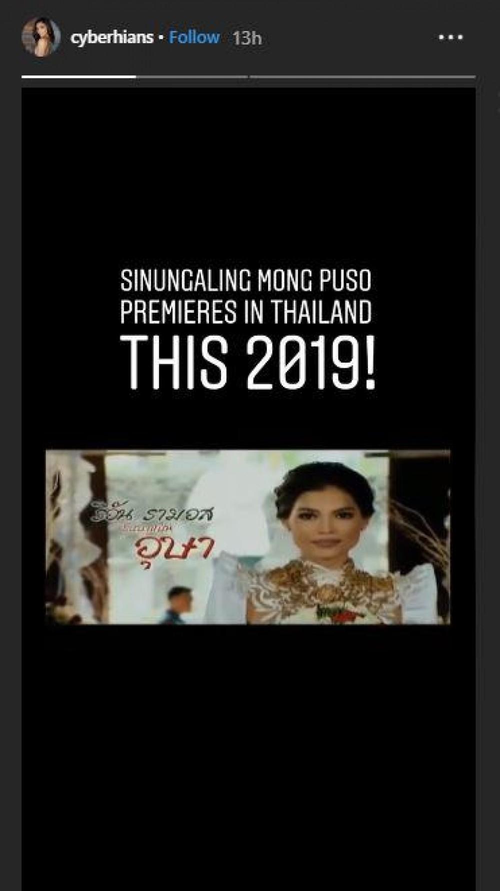 Una, ni-repost niya ang TV plug ng Sinungaling Mong Puso, na nakatakdang ipalabas sa Thailand sa pamamagitan ng JKN Global Media.