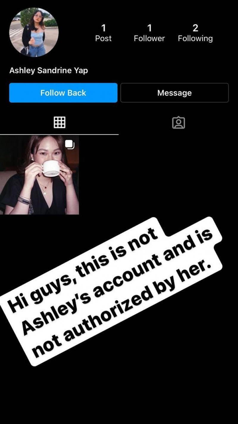 He wrote, "Hi guys, this is not Ashley's account and is not authorized by her."