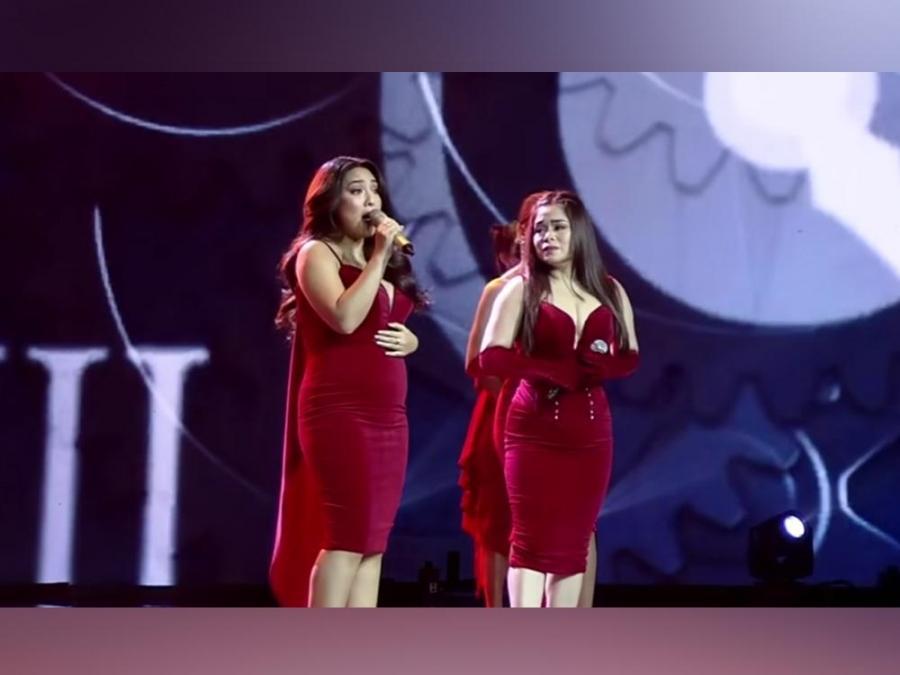 The Kapuso expectant mom donned a red bodycon dress which highlights her baby bump and still managed to reach the high notes in Angeline Quinto ballad "At Ang Hirap" with Jennie Gabriel.
