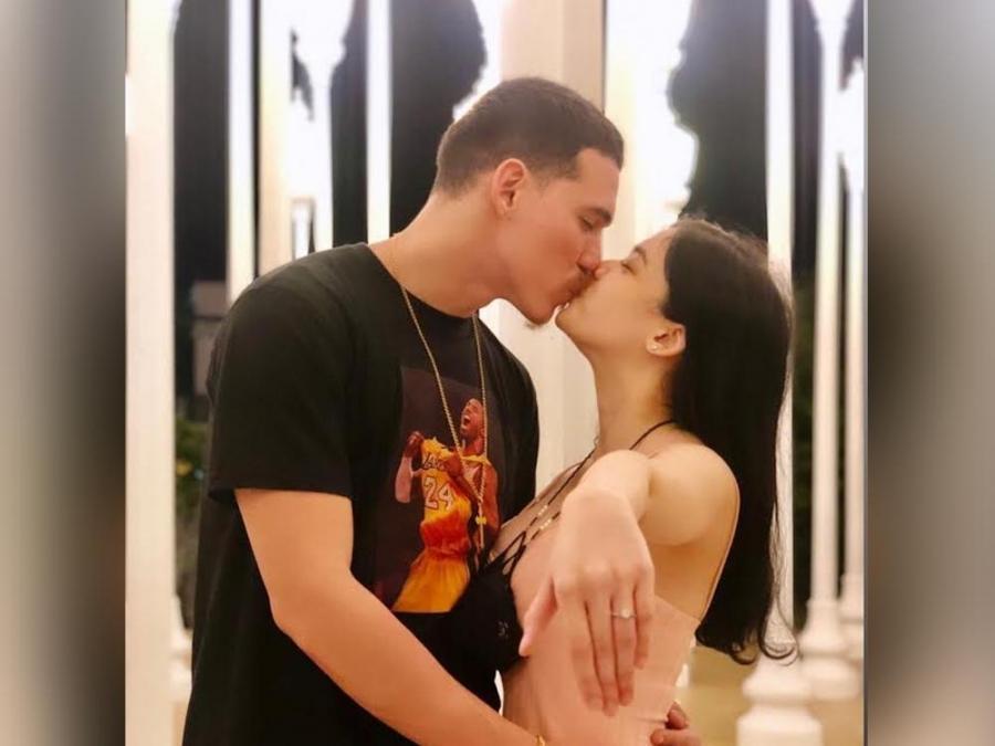 In a social media post, the basketball player shared a photo of him kissing his now fiancé, Cassandra, as she showed off the engagement ring to the camera.