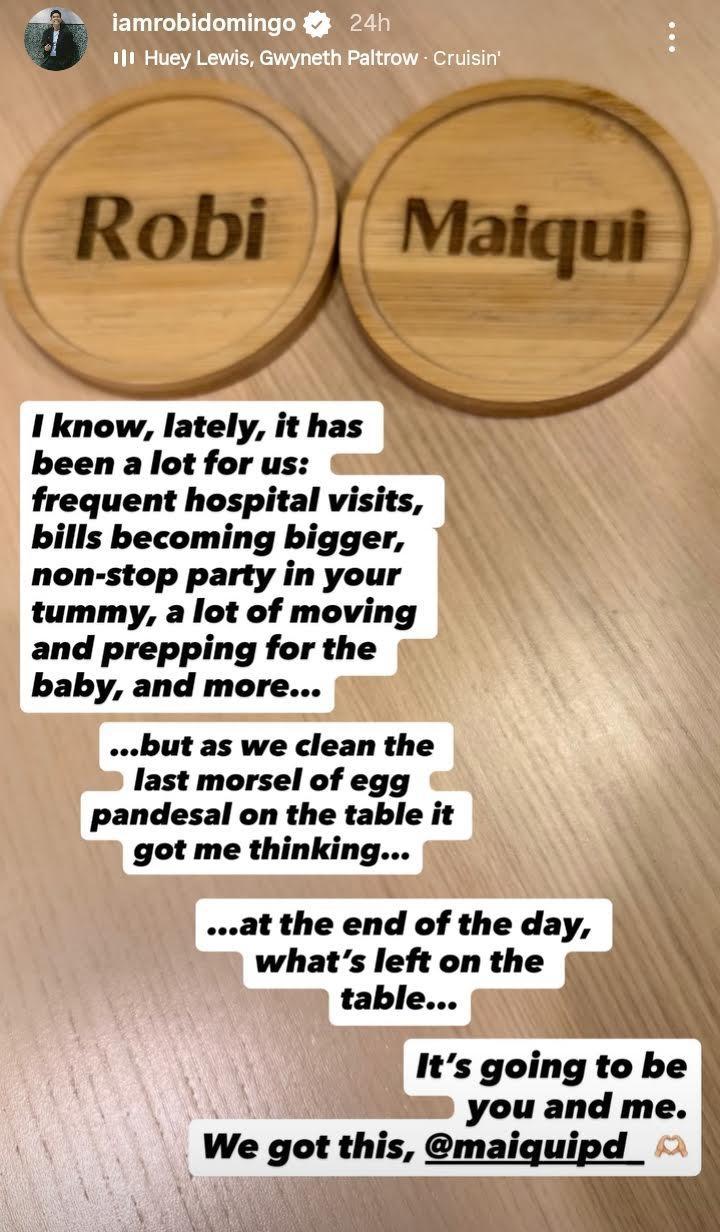With a lot of work to be done before their baby's birth, Robi took to Instagram Stories to assure Maiqui that everything is going to be fine.