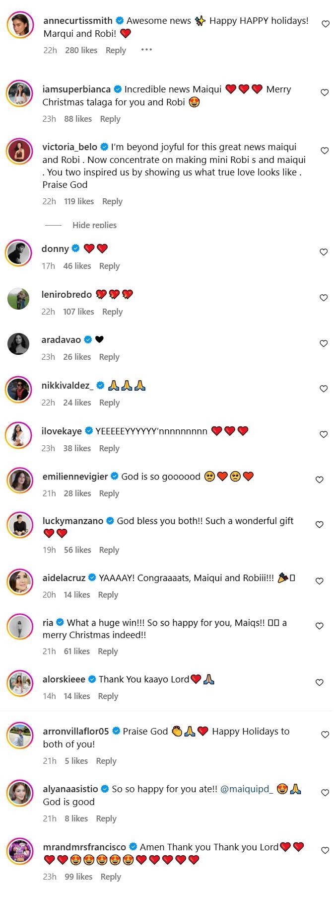 Even other celebrities were ecstatic with the good news Maiqui received, including It's Showtime host Anne Curtis who commented on her IG post, “Awesome news. Happy HAPPY holidays! Marqui and Robi!”