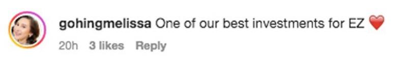 Melissa replied to Rocco's post, saying it is one of their best investments for Baby EZ.