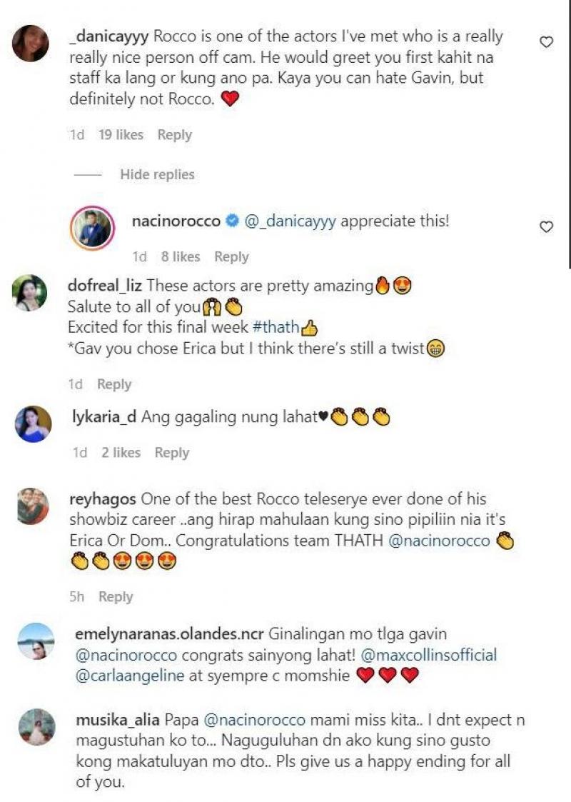 Several netizens also lauded Rocco's performance as Gavin, @reyhagos posted, “One of the best Rocco teleserye ever done of his showbiz career ..ang hirap mahulaan kung sino pipiliin nia it's Erica Or Dom.. Congratulations team THATH.”