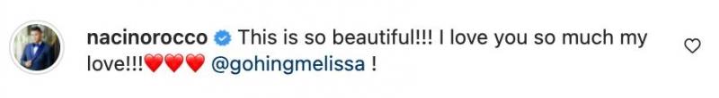 He wrote, "This is so beautiful!!! I love you so much my love!!! @gohingmelissa!"