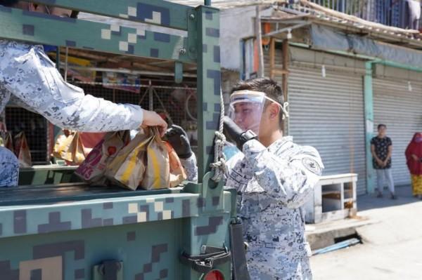 On Monday, together with his fellow Navy reservist and other officers, the actor gave food and drinks to soldiers who were on duty to help curb the spread of COVID-19.