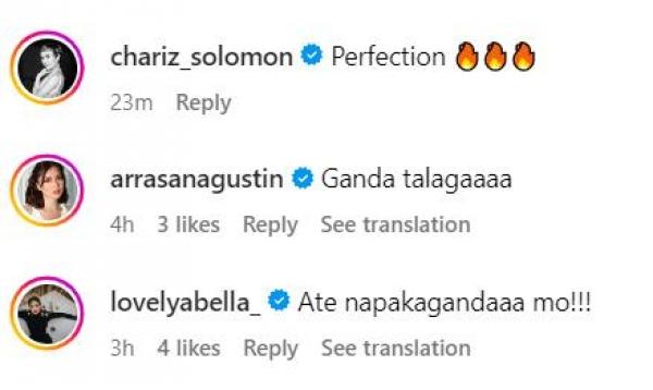 Rochelle's fellow celebrities Chariz Solomon, Arra San Agustin, and Lovely Abella reacted to her unusual makeup eyework, leaving favorable comments.