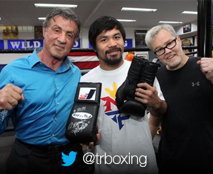 Meanwhile, on Planet Pacquiao... Rocky parachuted in for a visit at the World Famous Wild Card. #MayPac pic.twitter.com/vaQN90l4yV — Top Rank Boxing (@trboxing) April 18, 2015