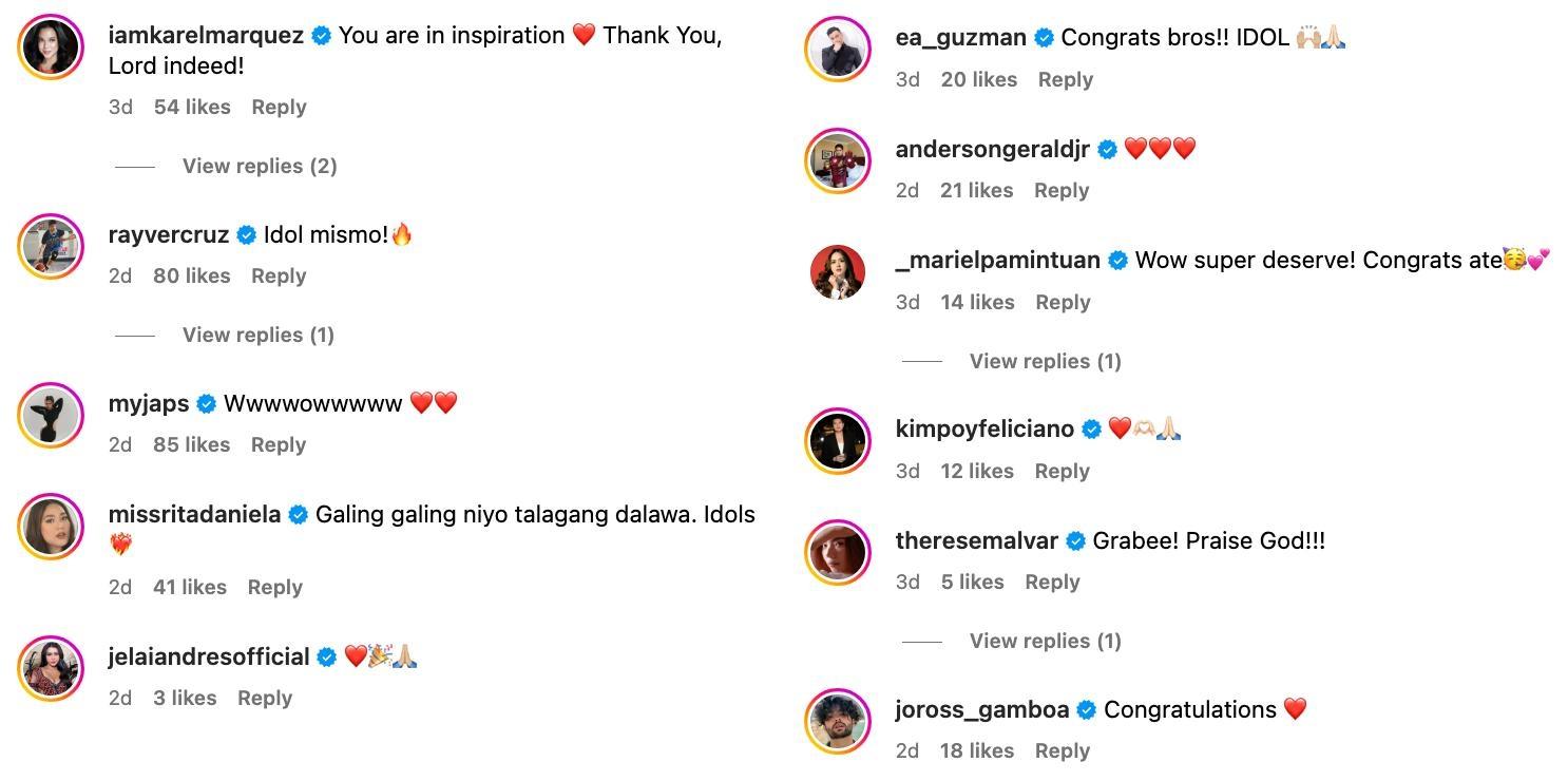 Meanwhile, messages of congratulations from their friends, family, and followers flooded the comments section of the post.