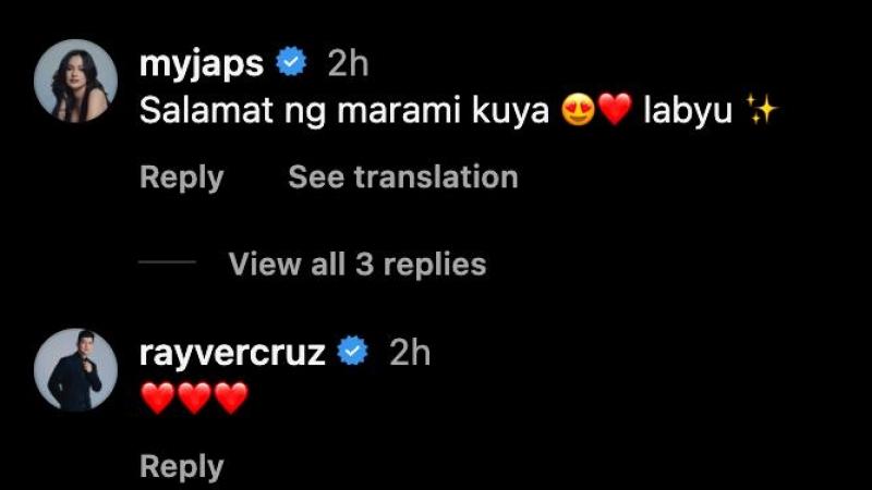 “Salamat ng marami kuya. [L]abyu,” she wrote.