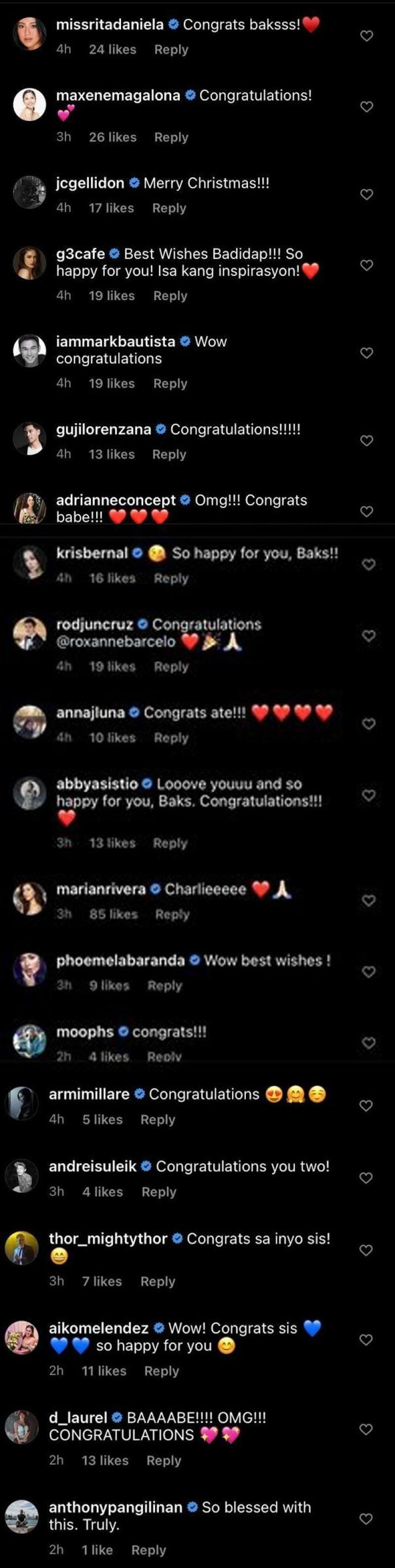 Comments from celebrity friends came pouring in, congratulating Roxanne for her big news.