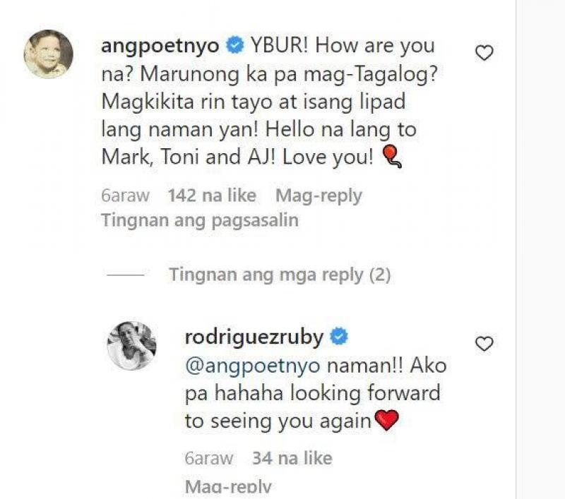 Ruby, meanwhile, answered back saying that she can still speak Tagalog and that she's looking forward to seeing the comedian again.