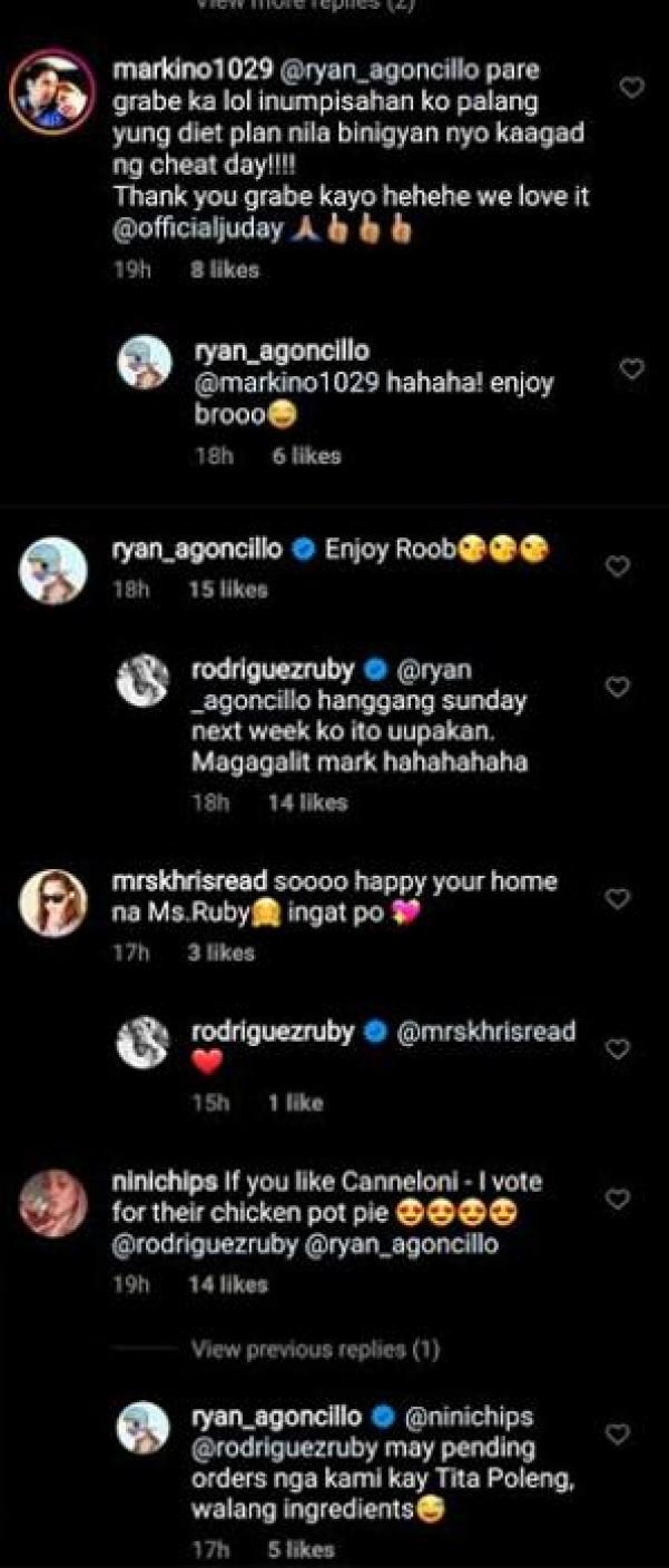 On her Instagram post, Ruby posted the "feast" especially prepared by the Agoncillo couple for her after getting hospitalized.