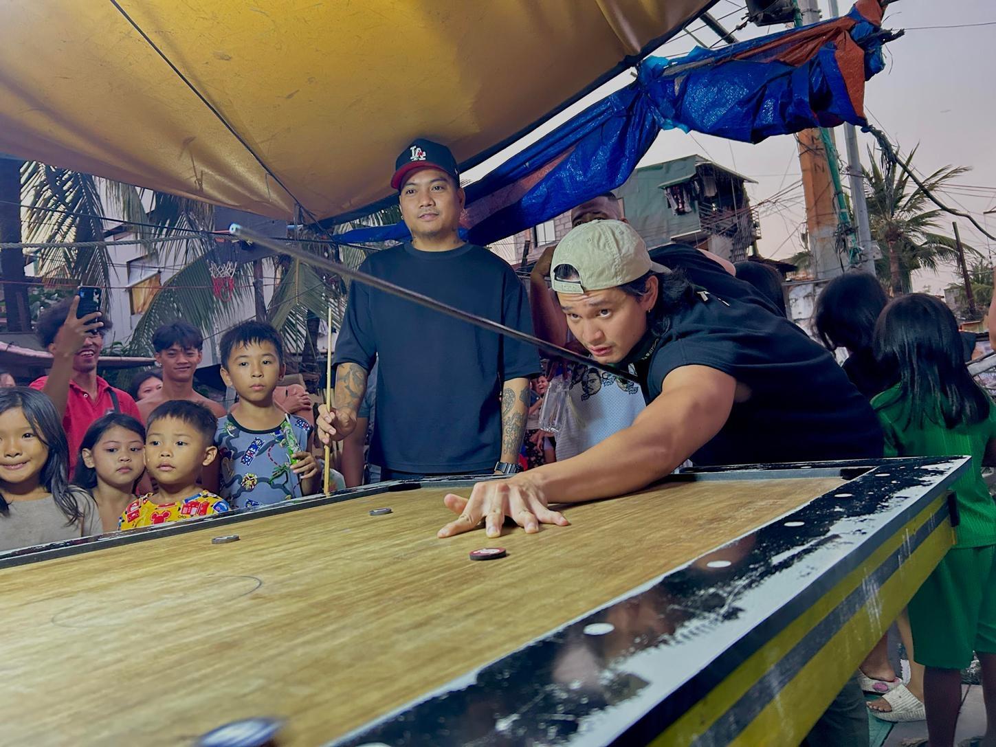 Nakipaglaro pa siya ng billiards sa ilang mga kalalakihan doon at nanlibre ng meryenda para sa mga batang masigasig na sumalubong sa kanya.