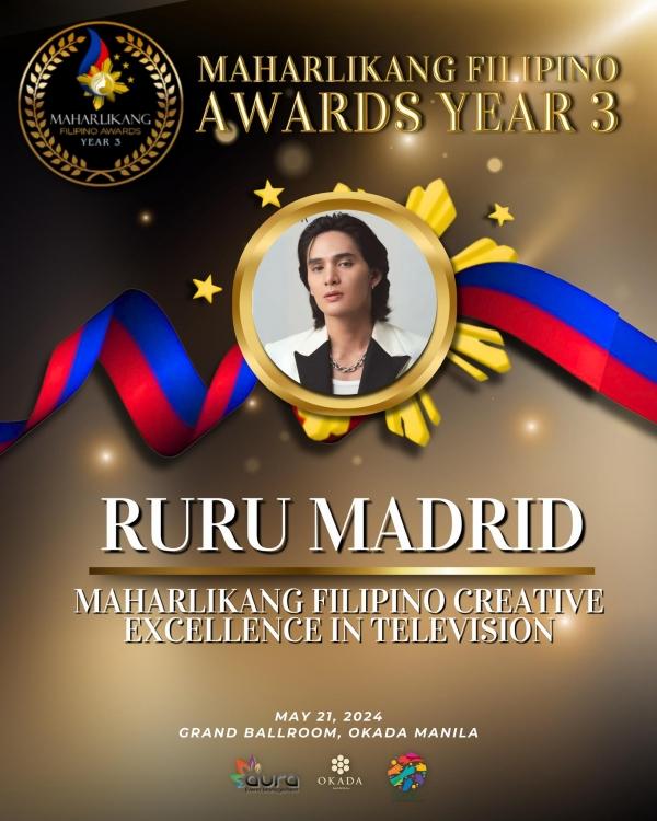 Sa ginanap na Maharlikang Filipino Awards, iginawad kay Ruru ang pagkilala para sa Creative Excellence in Television.
