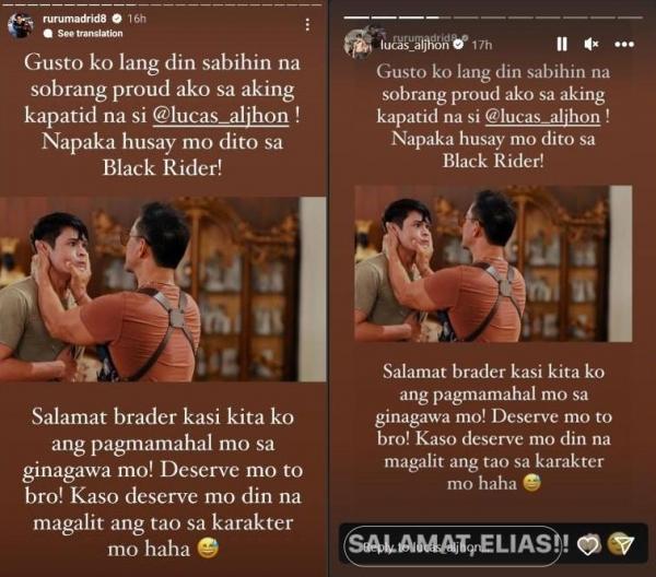 Sabi ng Sparkle actor sa post niya sa Instagram Story, “Gusto ko lang din sabihin na sobrang proud ako sa aking kapatid na si @lucas_aljhon! Napakahusay mo dito sa Black Rider!”