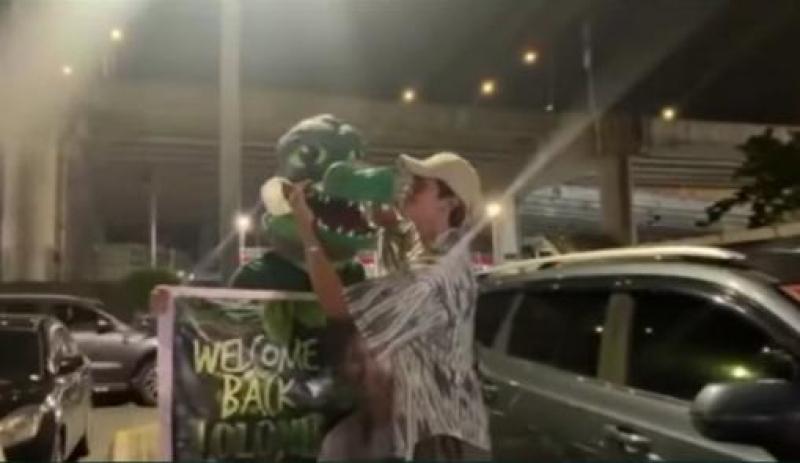 Sa parking lot, sinorpresa siya ng Dakila mascot na may dala pang banner na nagsasabing "Welcome back, Lolong!"