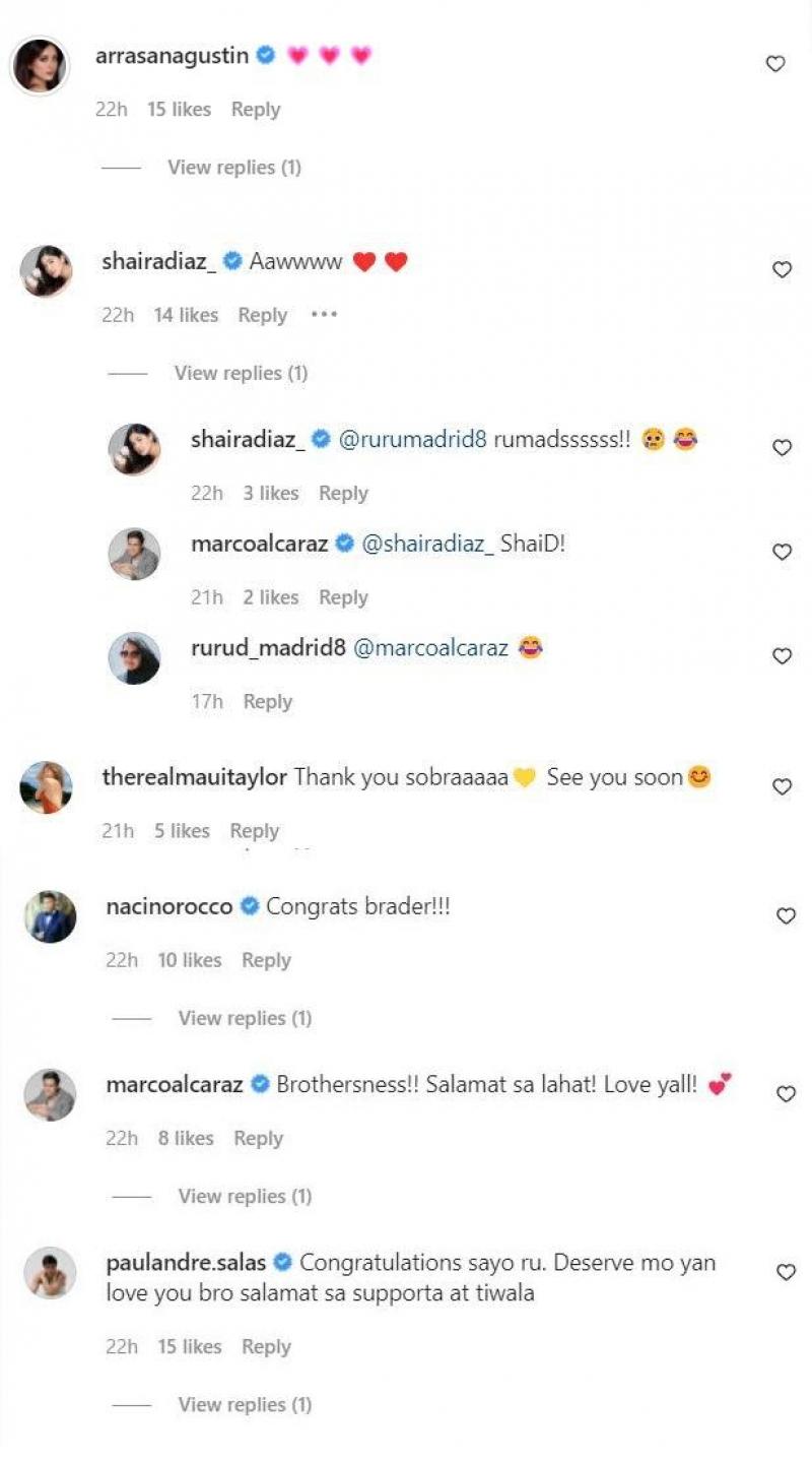 Napa-react naman sa heartwarming post ni Ruru Madrid ang kaniyang leading ladies sa serye na sina Arra San Agustin at Shaira Diaz.