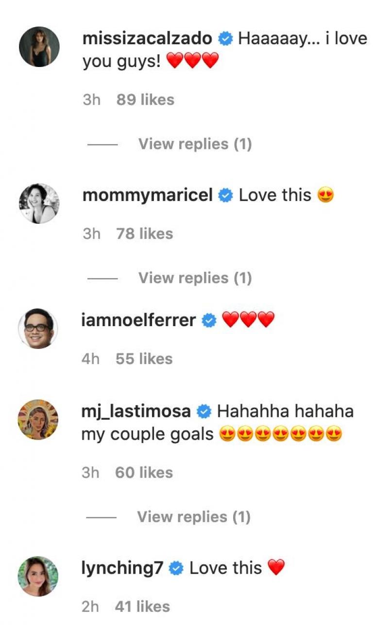 Iza Calzado, for instance, wrote that she loved the couple. Maricel Laxa-Pangilinan and Lyn Ching wrote that they loved the post, while MJ Lastimosa declared that Ryan and Judy Ann were her “couple goals.”