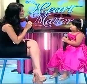 Kung dati ay si Heart Evangelista ang guest ni Ryzza Mae Dizon sa kanyang show, ngayon ay si Aling Maliit naman ang in-interview ni Heart sa 'Startalk' segment na 'Heart of the Matter'. Game na game ang 2013 MMFF Best Child Performer sa pagsagot sa mga tanong ng host-actress tungkol sa kanyang pagkapanalo at sa kanyang leading man na si Bimby Aquino-Yap.