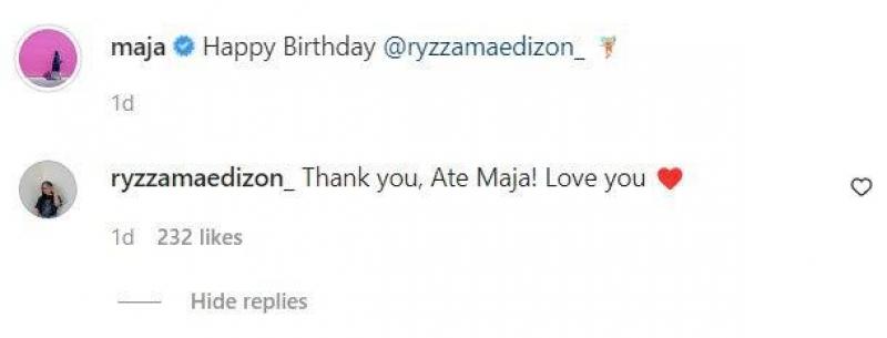 One of those who greeted Ryzza on her birthday was her Eat Bulaga co-star Maja Salvador, who uploaded a TikTok dance cover with her.