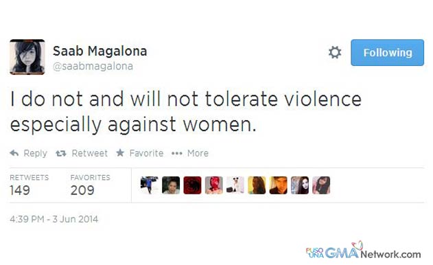 Sa kanyang official Twitter account, nag-post si Saab tungkol sa kaharasan sa mga kababaihan. Narito ang kanyang tweet.