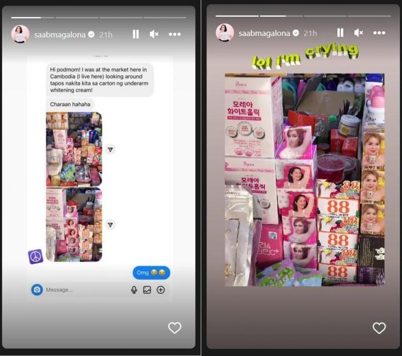 Ibinahagi ng celebrity mom ang direct message ng netizen sa kaniya kung saan sinabi nito na, “Hi podmom! I was at the market here in Cambodia (I live here). Looking around tapos nakita kita sa carton ng underarm whitening cream!”