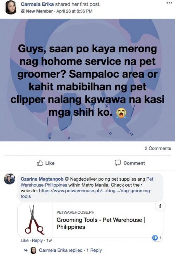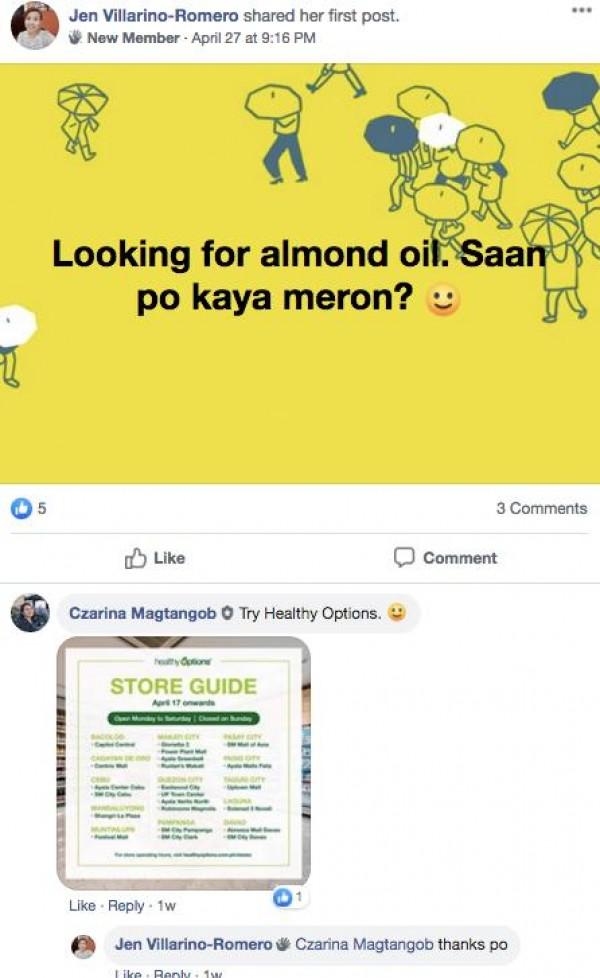Once you join 'Saan Meron,' you can ask members and admins where you can buy basic needs online, and they will recommend options based on your location and specifications.