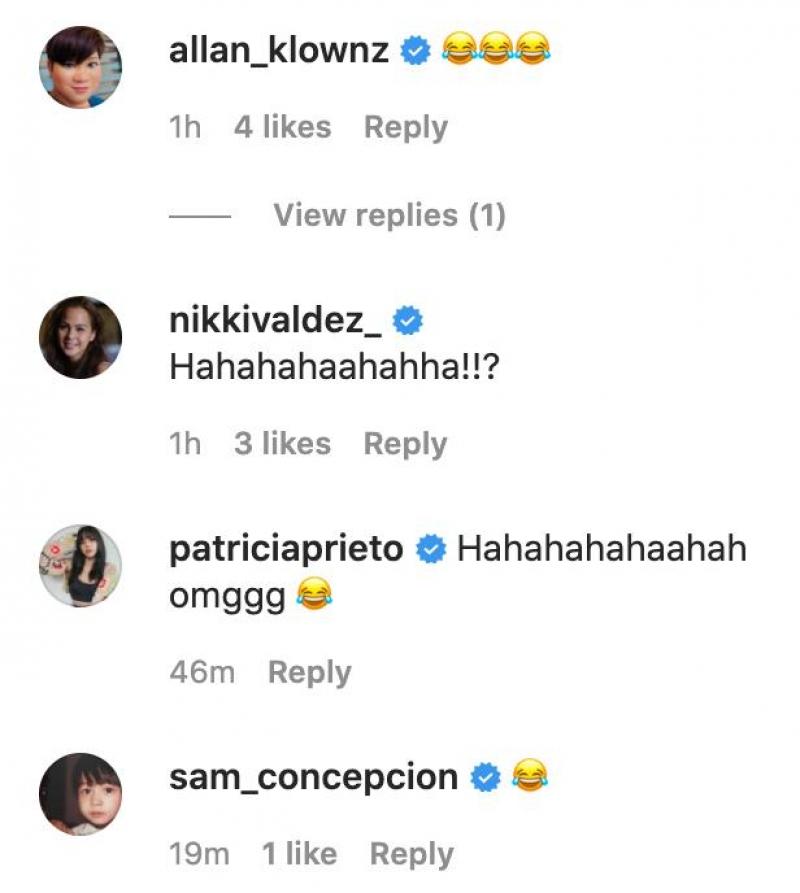 The post drew reactions from fellow celebrities like Allan K, Nikki Valdez, and Sam Concepcion.