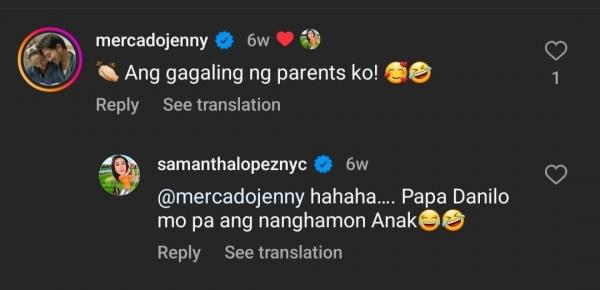 Followers admired their cuteness and even their Love. Die. Repeat. co-star Jennylyn Mercado couldn't help but react to the TikTok video of her onscreen parents. Samantha and Nonie play Jen's mom and dad in the series.