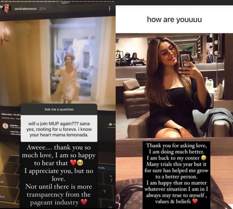 While the many controversies shrouded Sandra since the coronation night, she hasn't posted since October 22. The beauty queen said she is feeling much better and is now back to her “center.”