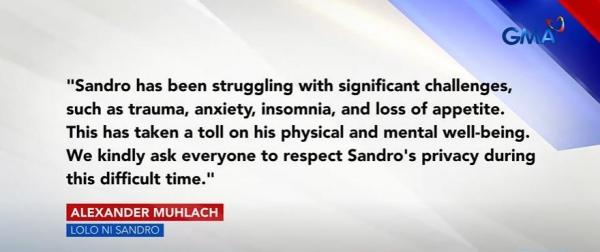 Lahad ni Alexander Muhlach, “Sandro has been struggling with significant challenges, such as trauma, anxiety, insomnia, and loss of appetite.