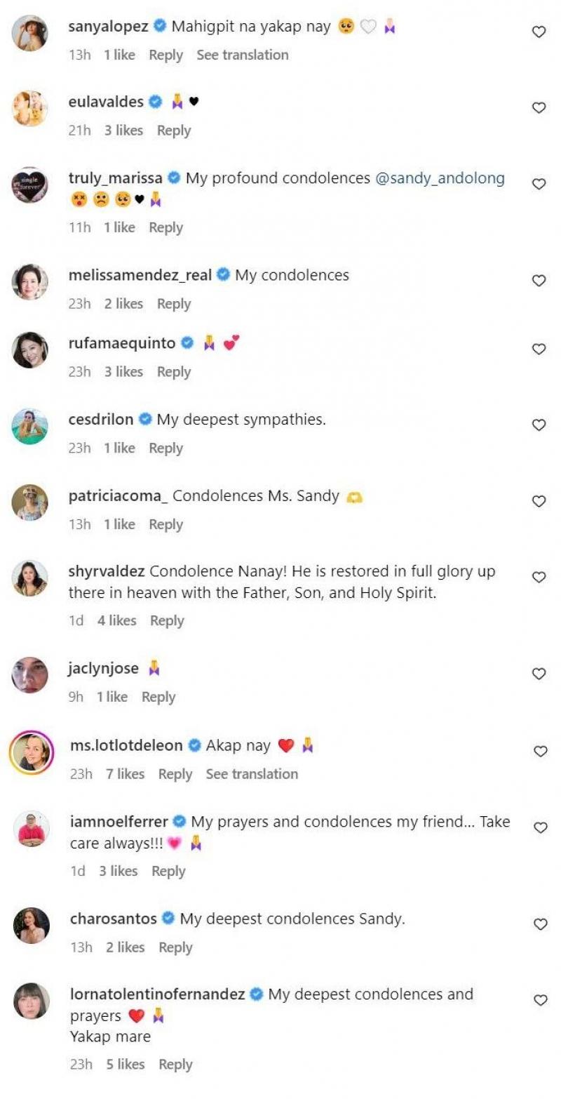 Several family and friends of Sandy offered their condolences including her stepdaughter Lotlot de Leon.