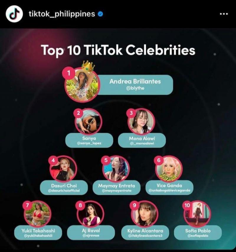 According to Tiktok_Phillipines, Sanya officially ranks second with a staggering 11.8 million following, Kyline boasts 7.6 million followers, and Sofia clinches the 10th spot with 7.5 million followers.