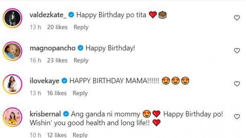 Meanwhile, in the comments section, some of her fellow celebrities including Kate Valdez, Pancho Magno, Kris Bernal, and Kakai Bautista also sent their greetings for Sanya's mom.
