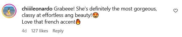 One commenter said, "Grabeee! She's definitely the most gorgeous, classy at effortless ang beauty! Love that French accent".