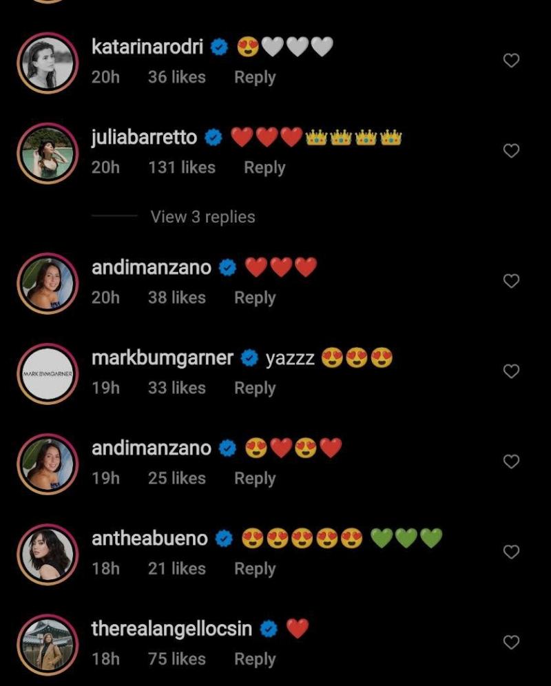 Local celebrities and personalities such as Katarina Rodriguez, Julia Barretto, Andi Manzano, Angel Locsin, and Mark Bumgarner also fell in love with Sarah's new 4x4 vehicle and left many hearts emojis in the comments.