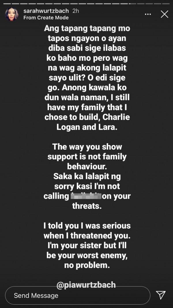 “The way you show support is not family behavior. Saka ka lalapit ng sorry kasi I'm not calling bullsh*t on your threats.”