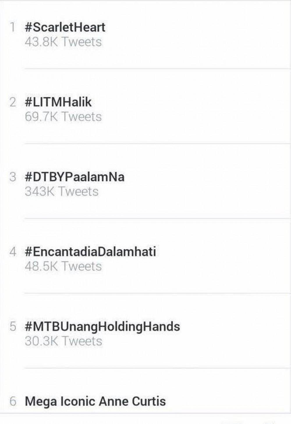 Trending kagabi, March 27 ang Philippine premiere ng Scarlet Heart sa Pilipinas. Nakuha ng #ScarletHeart ang top spot sa Philippines, at pang-fifth place naman ito worldwide.