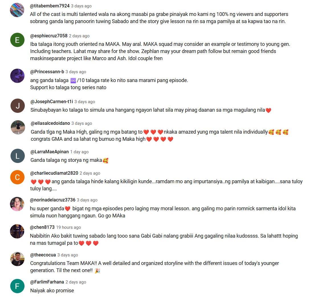 Marami ang pumuri sa maganda at nakaka-inspire na kuwento ng youth-oriented show, maging sa husay ng young stars na bumubuo rito na sina Zephanie, Ashley Sarmiento, Marco Masa, Dylan Menor, John Clifford, Olive May, Sean Lucas, Chanty, at May Ann Basa, kasama ang seasoned actor na si Romnick Sarmenta.