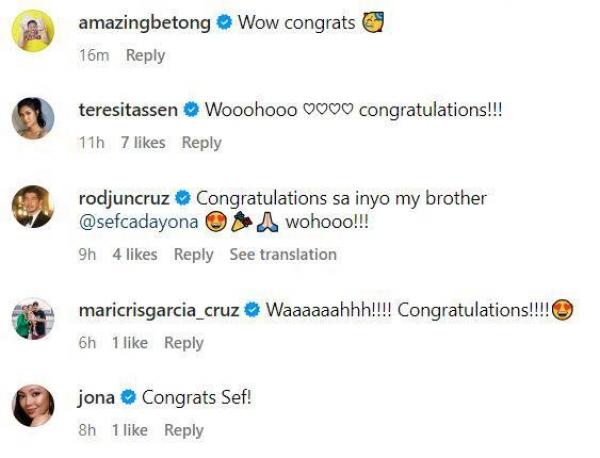 Among those who congratulated Sef and his partner are Betong Sumaya, Winwyn Marquez, Rodjun Cruz, Maricris Garcia, Jonalyn Viray, and many more.