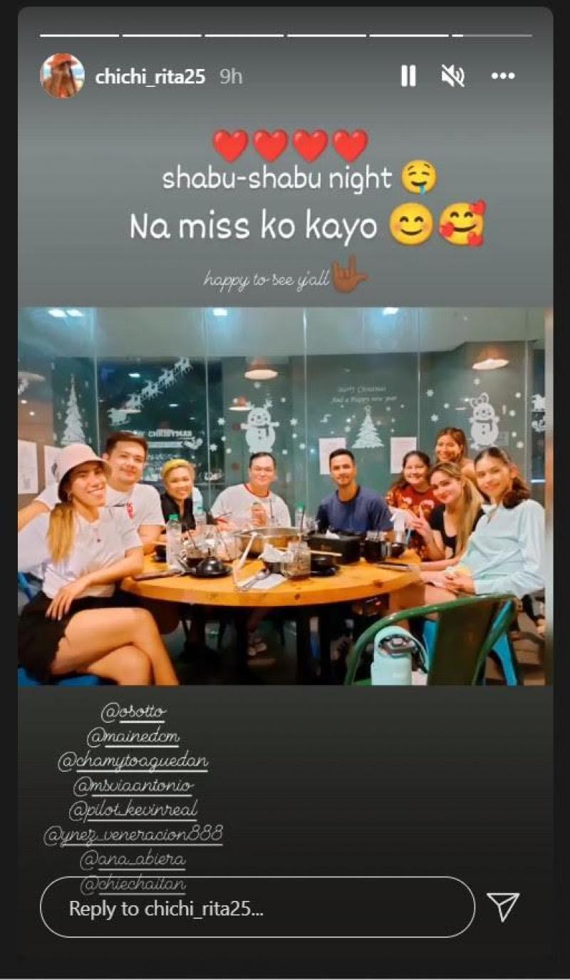 Spotted during the mini get-together were Maine Mendoza, Oyo Sotto, Kevin Santos, Via Antonio, and Chichirita.