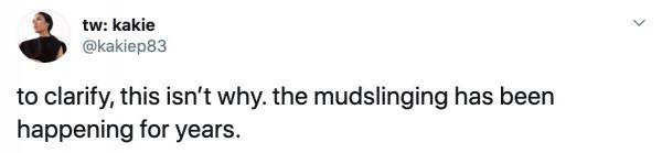Adding, “To clarify, this isn't why. The mudslinging has been happening for years.”