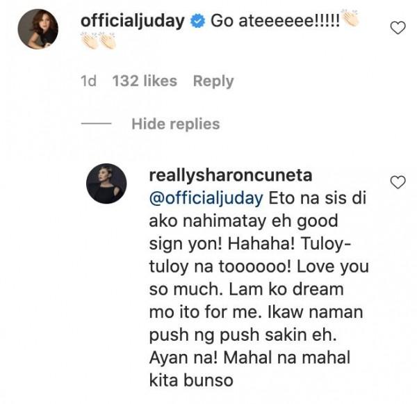 “Go, ateeeeee!!!” Judy Ann wrote while giving Sharon three clapping emojis.