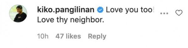 In the comments section, Kiko returned her sweet message and said, “[I] love you too! Love thy neighbor.”