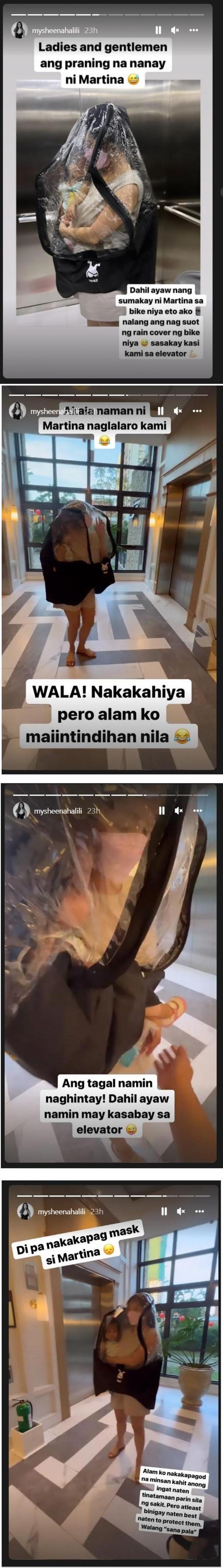 Base sa sunod-sunod na post via Instagram Stories ng former StarStruck finalist, makikita na siya ay nag-suot ng rain cover bago sila pumasok sa elevator.