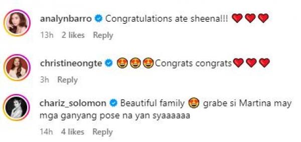 Kapuso star Chariz Solomon also commented, emphasizing how adorable Martina looked in the pictures. She wrote, "Beautiful family grabe si Martina may mga ganyang pose na yan siya."