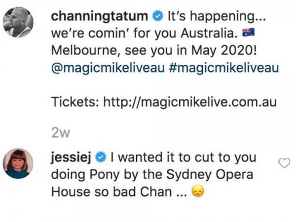 While Jessie J had just left a comment on a video that Channing posted two weeks before the news of their separation surfaced:
